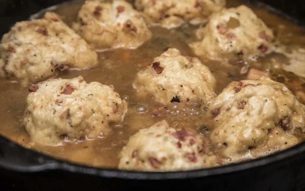 5. Using a 1-oz. scoop or 2 tablespoons, drop batter into simmering soup.